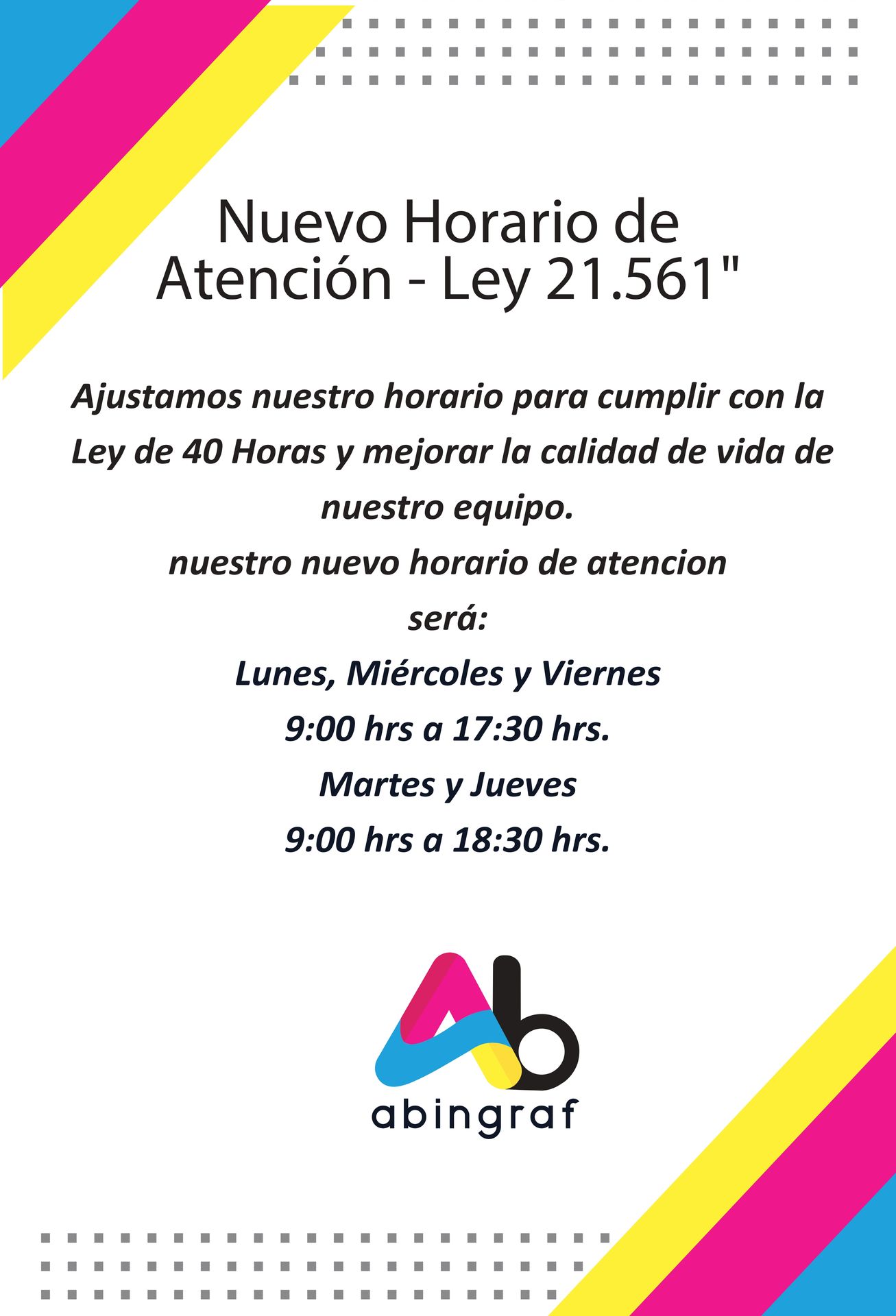 9:00 - 18:30 Lunes a Viernes